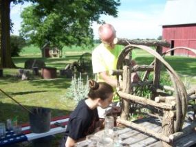 If you look at my Bucket List Post you’ll see my Cherry Wood Strip Canoe. I have given the granddaughters rides in it for years and they were told – The summer you turn 14, you’re coming for 2 weeks and we are making a canoe. Lauren made her canoe this summer. She did every function: table sawing boards into strips, planing to thickness, cove and bead w a router, glue and clamp, sand, fiberglass and epoxy, finish work and varnish. She even caned the seat. She stuck with it. I got to spend 100 hours with my granddaughter.